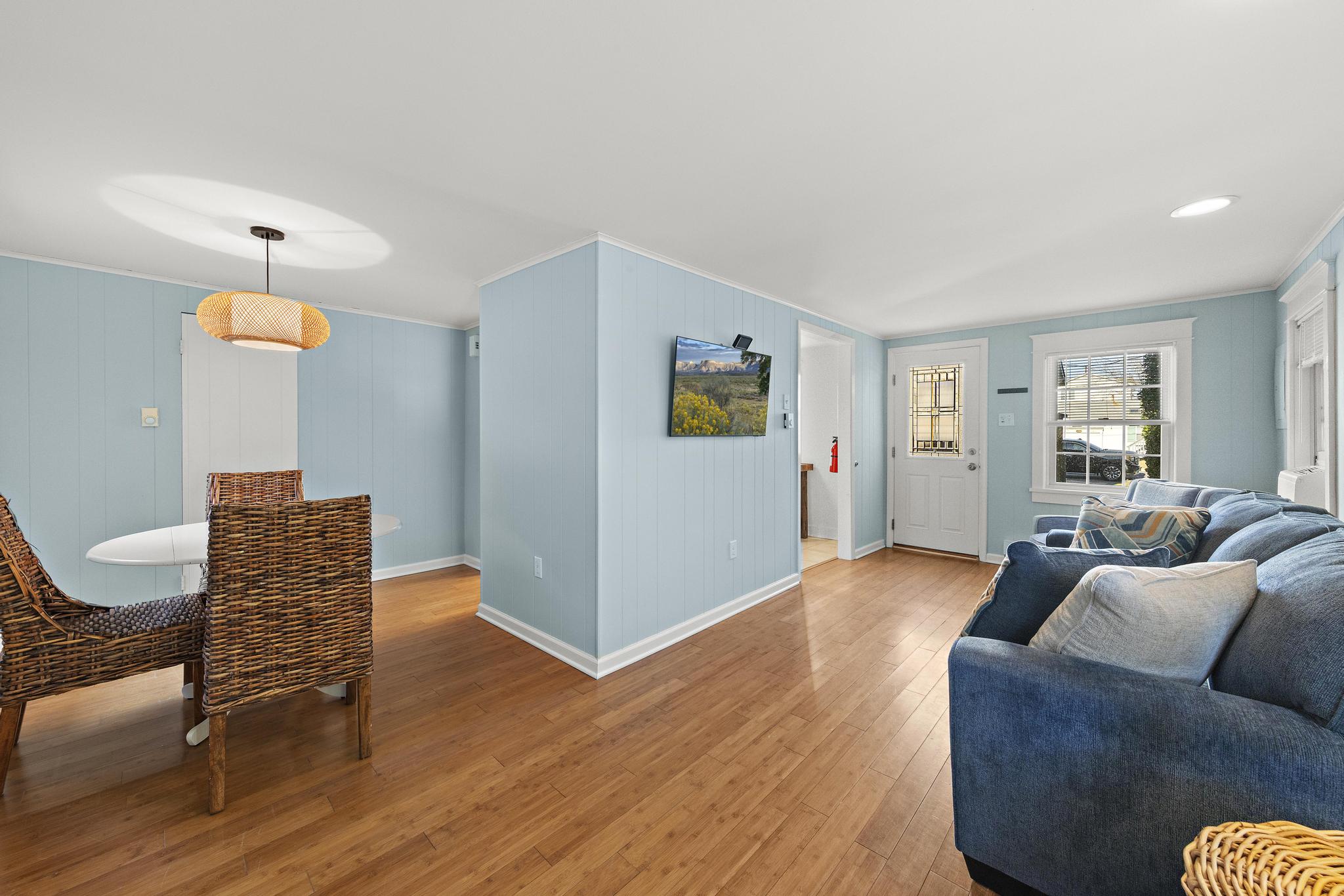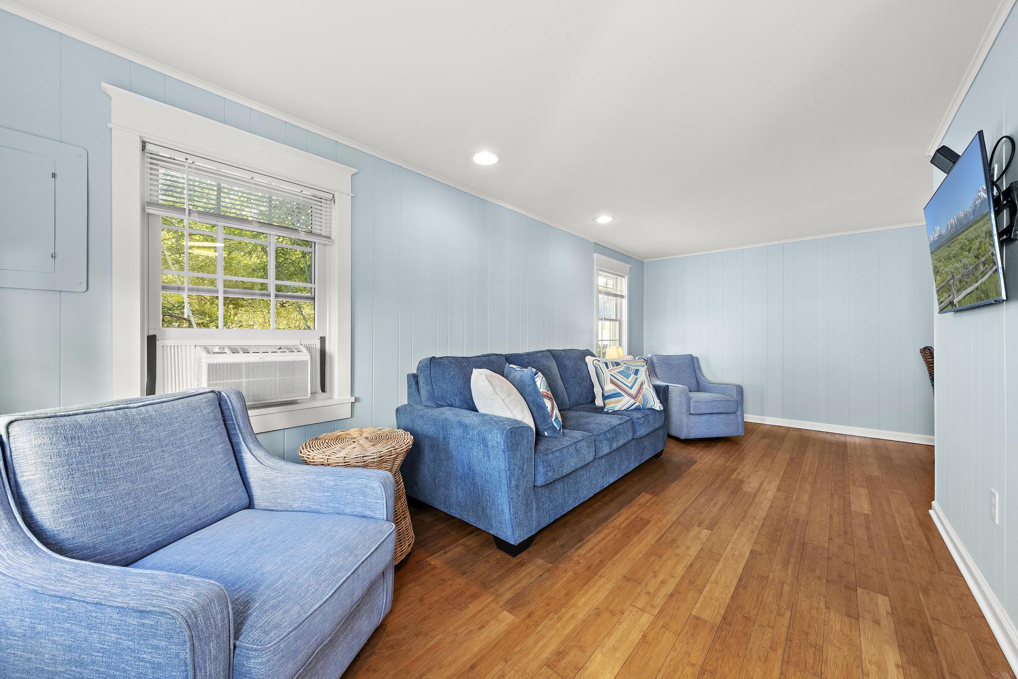 Recently updated, Five Houses from the Beach offers a nostalgic retreat. This property comprises the main house and a rear cottage. New cedar siding, a modern kitchen, and professionally landscaped grounds enhance the property’s appeal. The main house features four bedrooms and two and a half bathrooms, while the rear cottage includes a bedroom, a full bathroom, a living room, and a dining area. Conveniently located near all that Beach Haven has to offer, this property provides an ideal setting for relaxation and enjoyment.