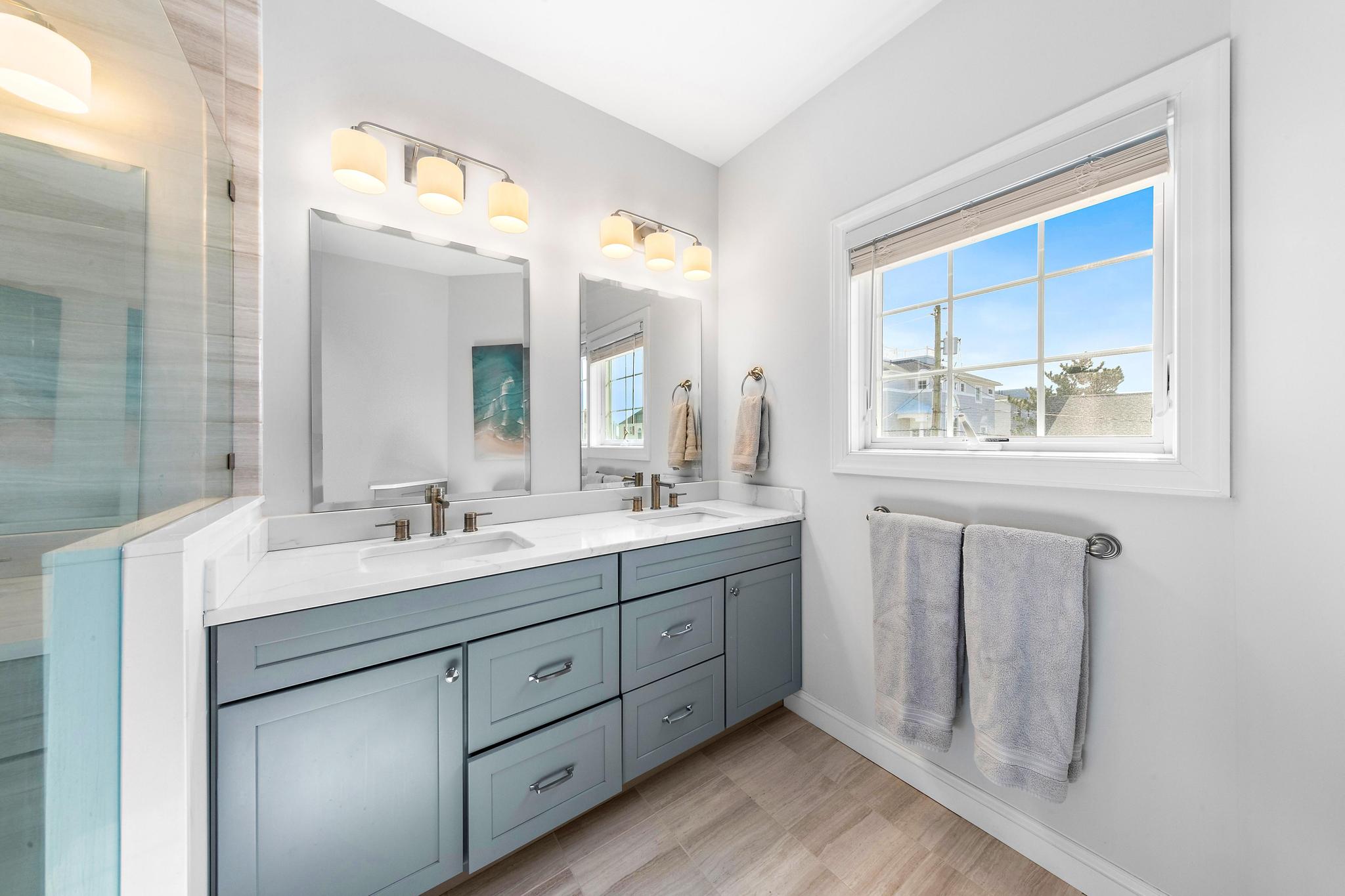 On the ground floor, you'll discover a well thought out bonus bedroom with a twin bed and trundle, perfect for additional guests. An adjacent full bathroom offers convenient pool and hot tub access whiling ensuring seamless transitions from indoor to outdoor beachside living.