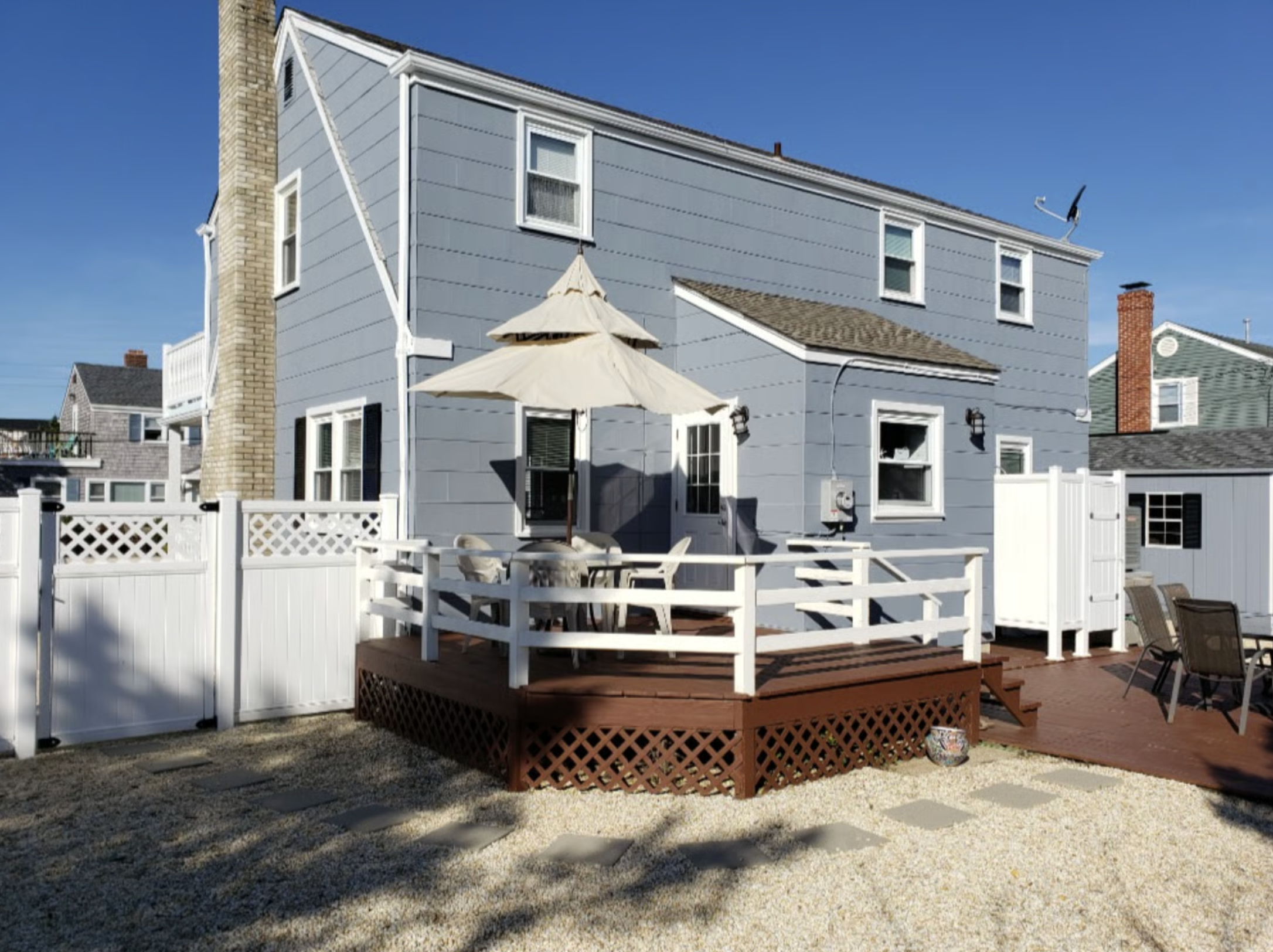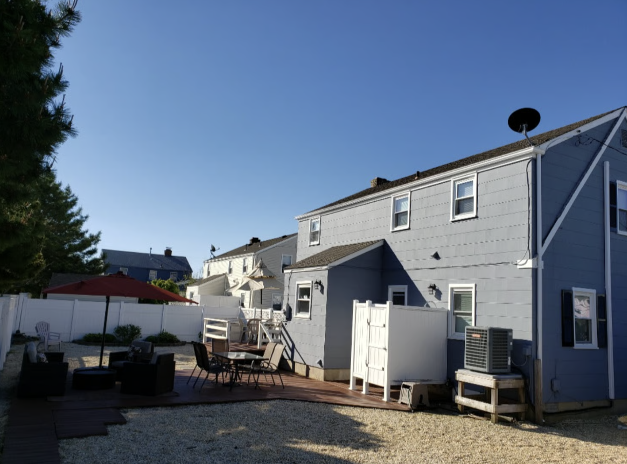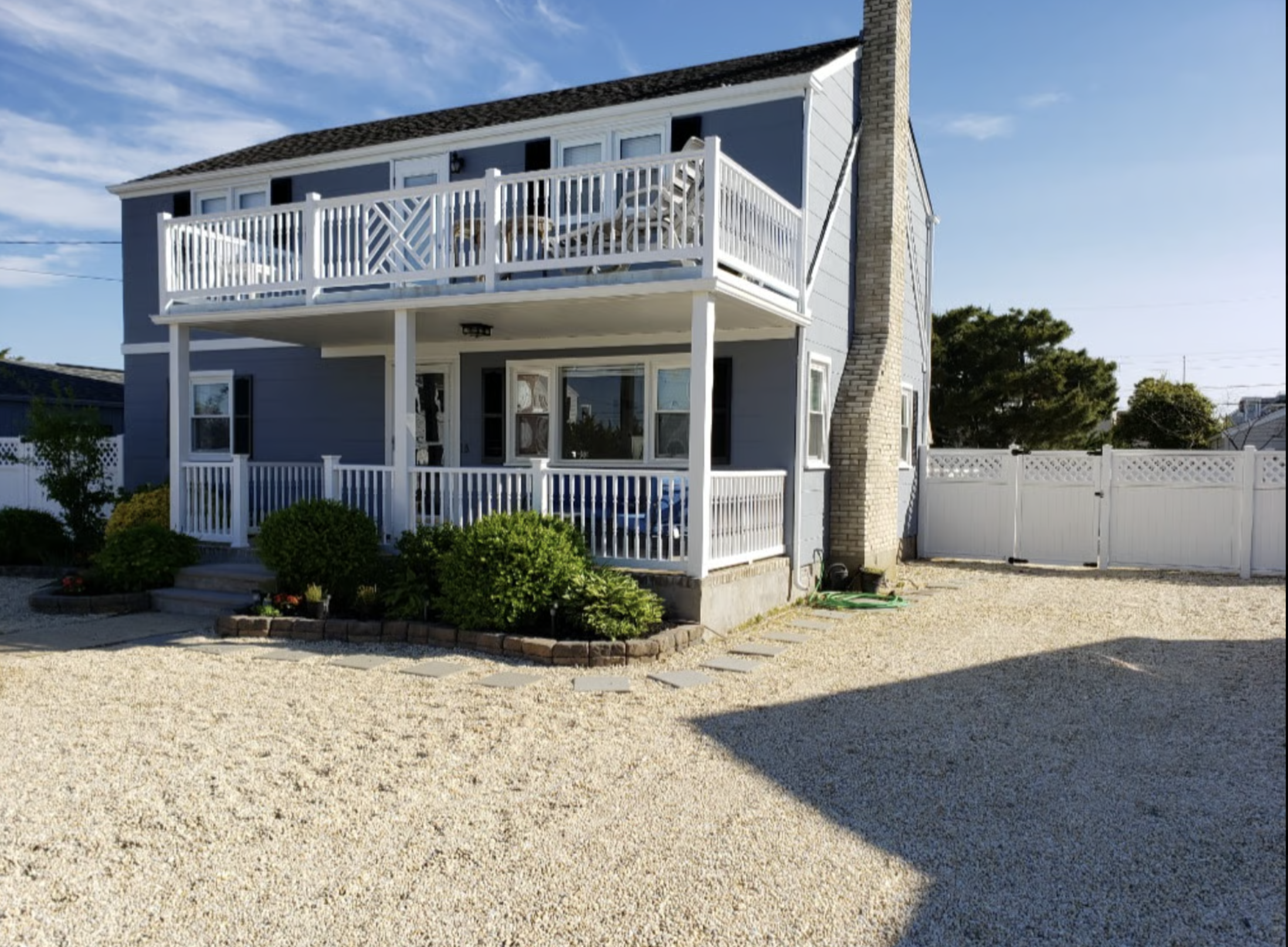 This OCEANSIDE house is one of the best kept secrets on LBI. It is only steps from the ocean and the bay with a short bike ride to the bustle of Beach Haven with the quiet and private feel of Haven Beach. The home features 5 bedrooms which sleeps up to 12 (including a large master room with sitting area); 2 updated bathrooms; 1 external bath/shower with 'waterfall' showerhead; new kitchen (including dishwasher, extra large refrigerator with ice/water dispenser, microwave, pots/pans and dining dishes/silverware/glasses); cozy dining room with corner cabinet and dining table to seat up to 8; open living room area with a gas fireplace and cable TV; wireless internet access; beautiful outside area including a large front deck, a front porch with sitting area, a back deck with a glass table/umbrella set, gas grill and a wonderful large outside decked area with table. The house has central air, washer & dryer unit, and ample off street parking with 3 driveways!