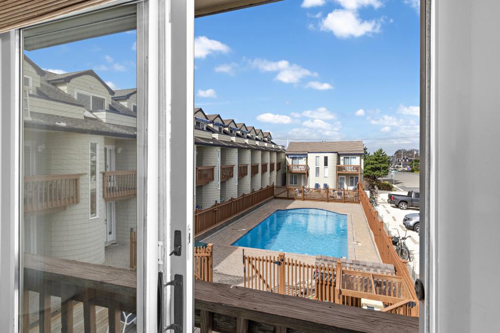 Oceanfront! 2 Bed / 2 bath condo in the Sans Condo. Private deck has amazing ocean views. Access to a shared pool with umbrellas as well as private walkway directly over the dune to the beach. There is one assigned parking space in the complex and Pearl Street pavilion is just a few feet away.