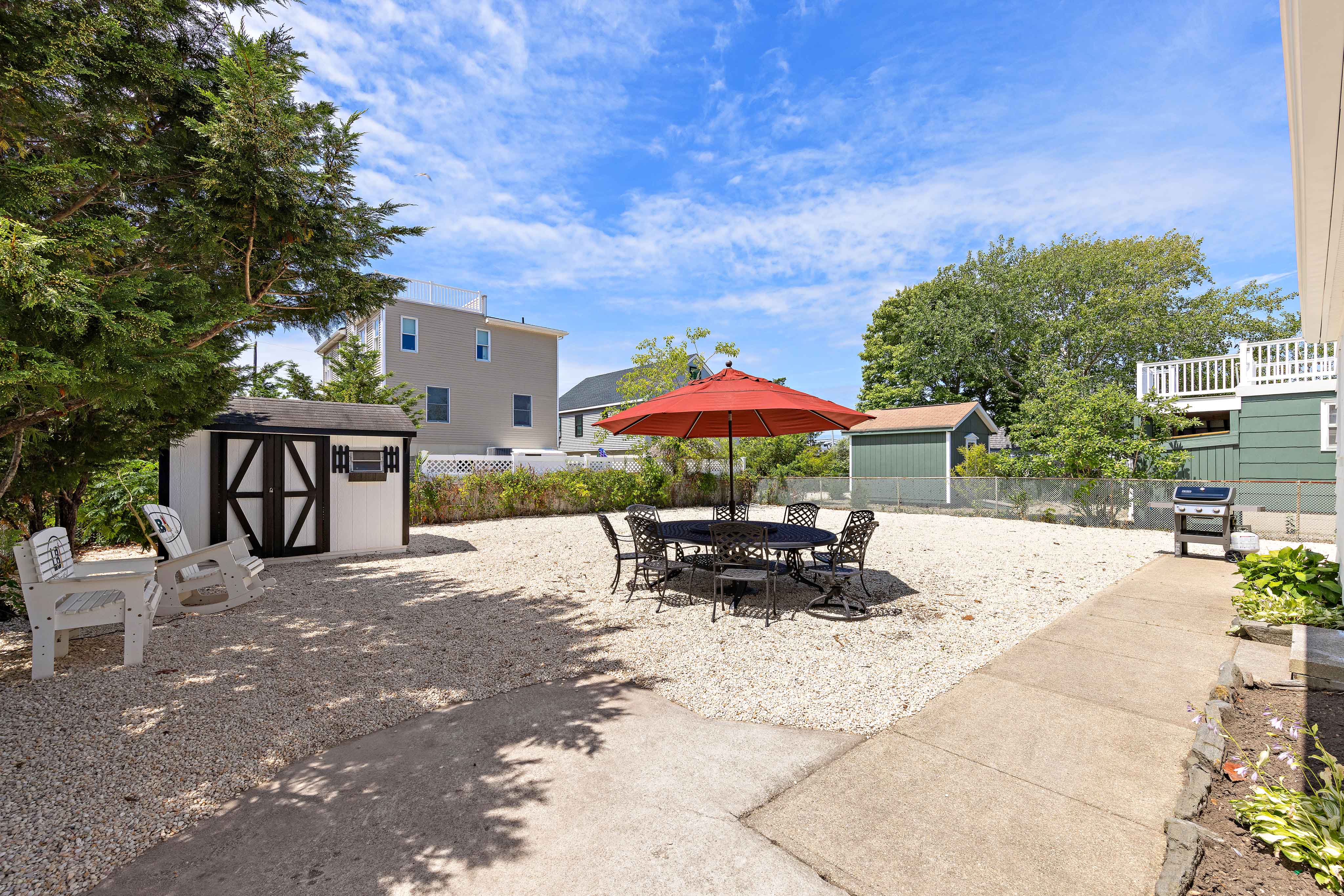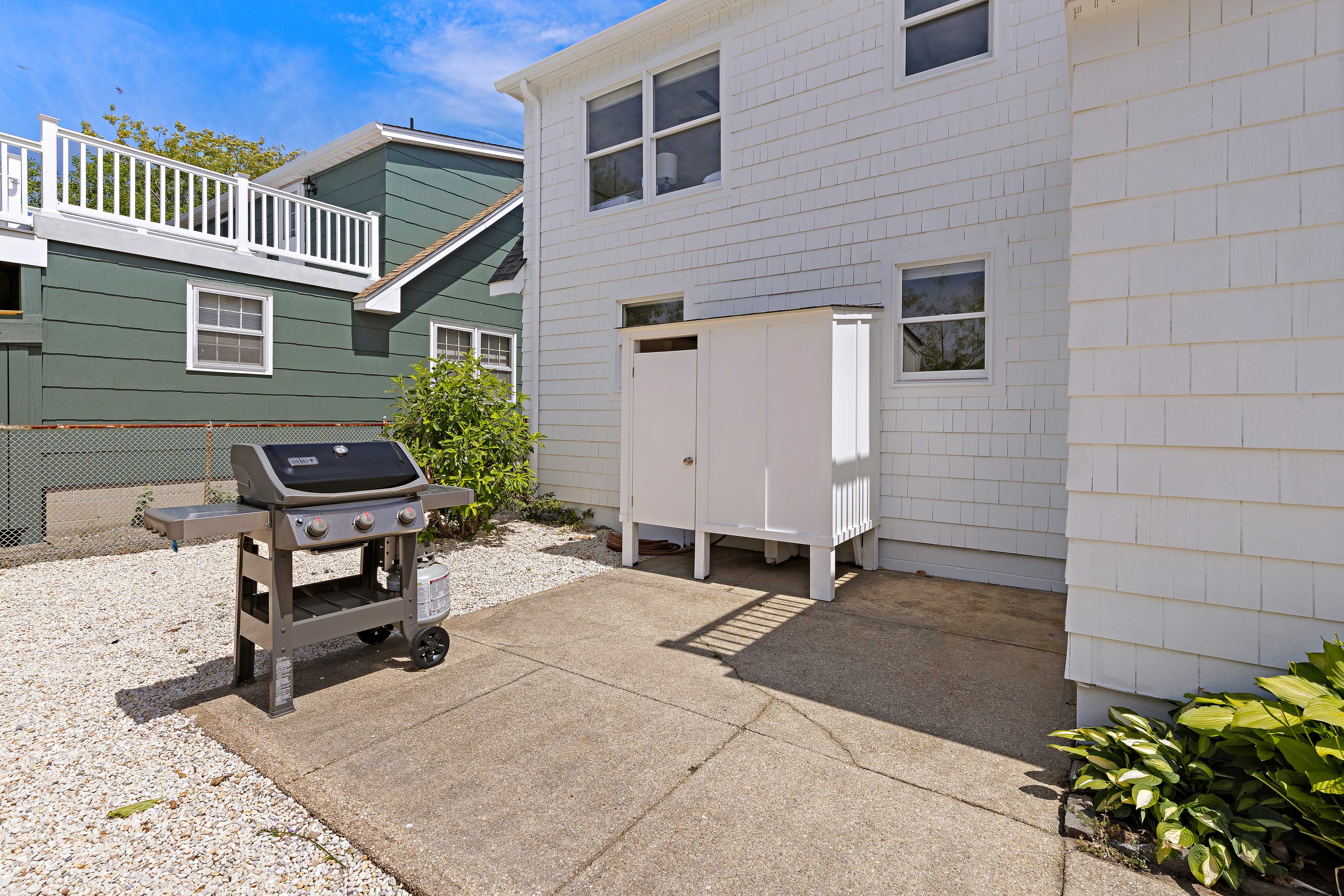The large backyard area is perfect for relaxing or entertaining, complete with a gas grill for barbecues and Al Fresco dining with seating for eight. After a day at the beach, rinse off with the convenient outdoor shower. The second-story back deck provides another perfect spot for relaxation.