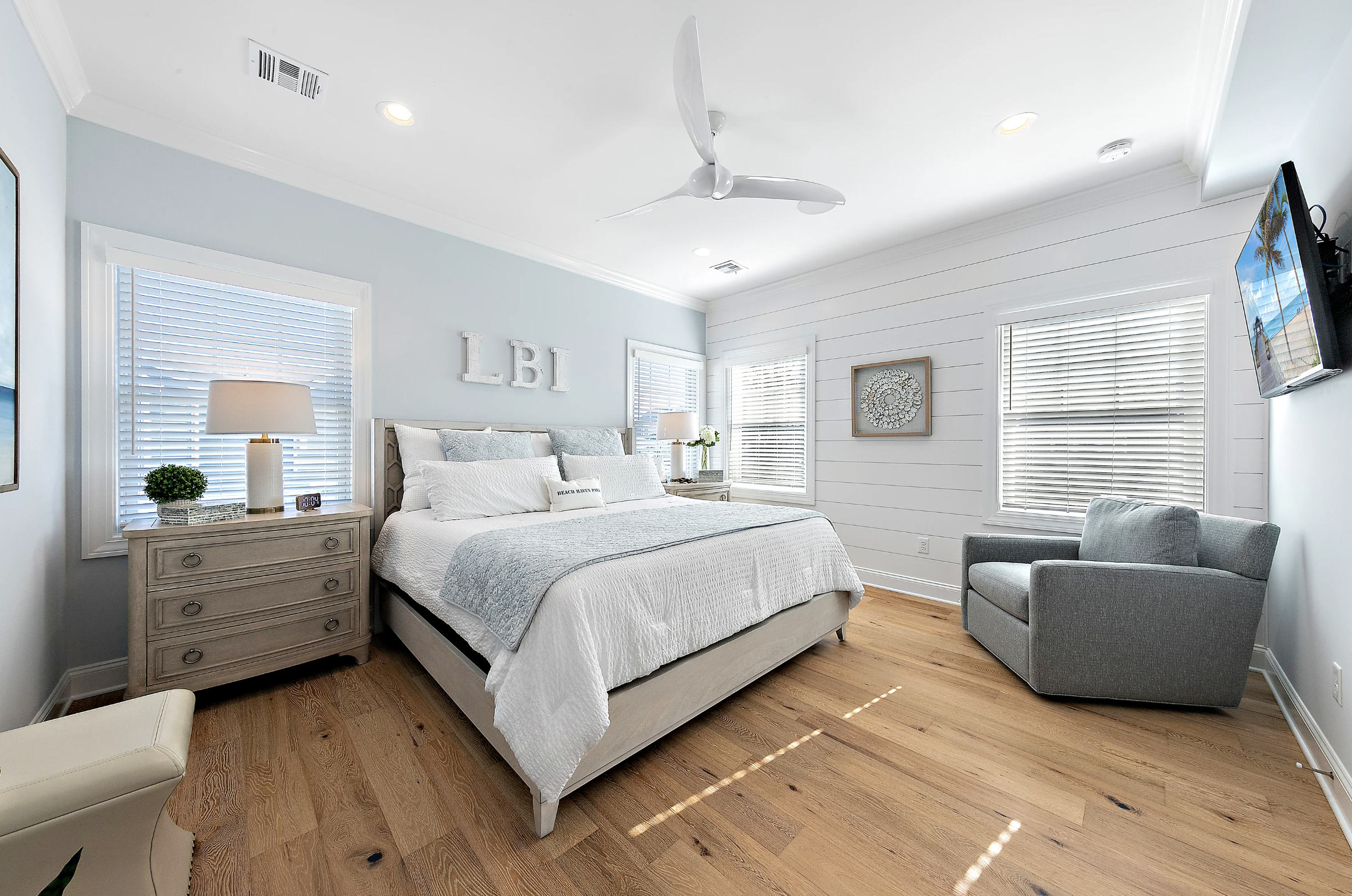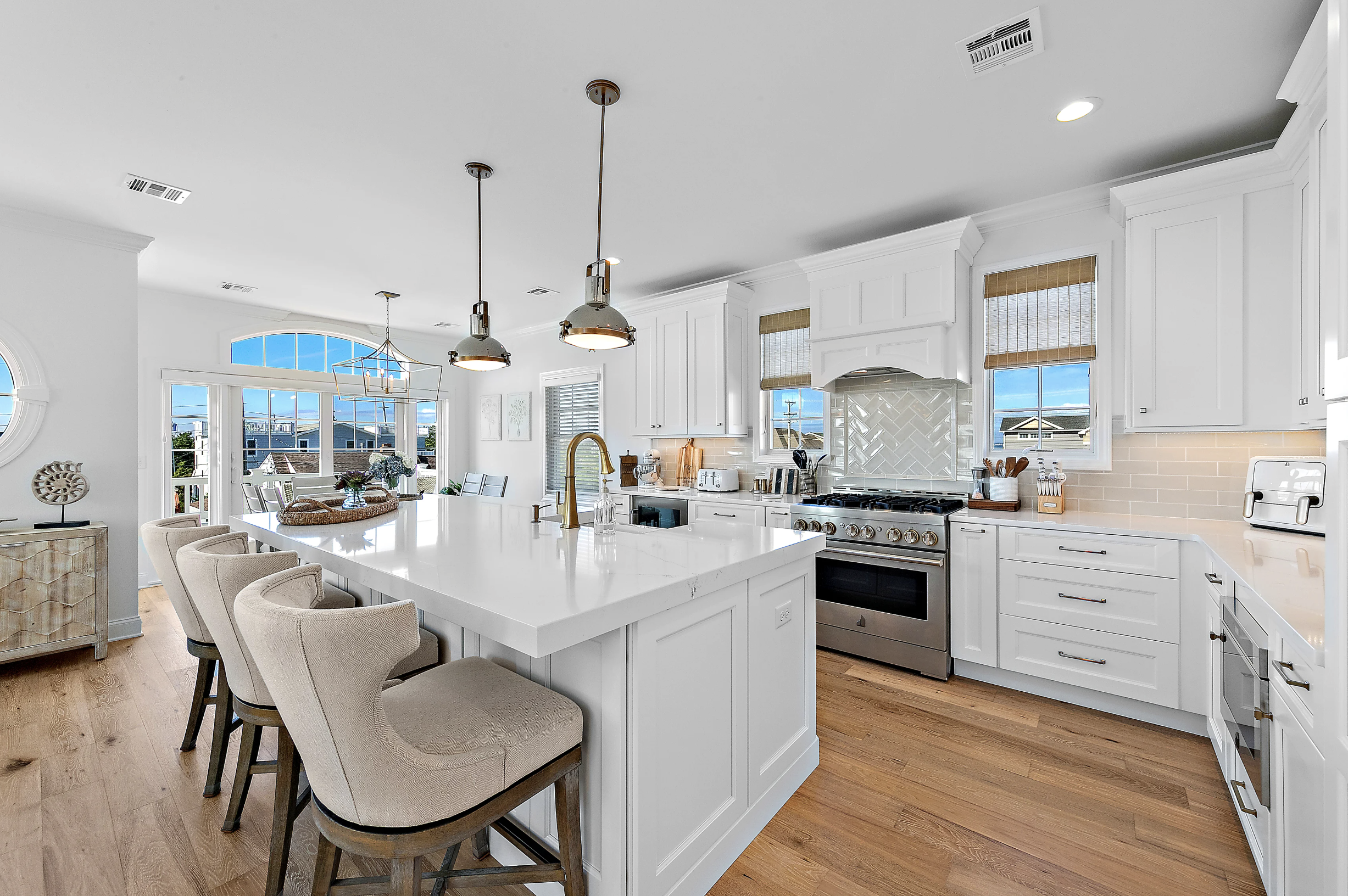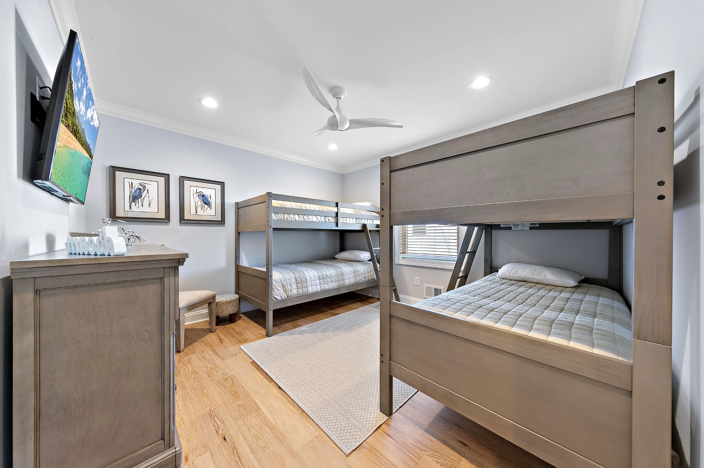 Gorgeous new reverse living in Beach Haven Park on Louisiana Avenue. Two ensuites, five bedrooms, four with king beds, and the fifth bedroom is a bunk room featuring two sets of twin-size bunks.