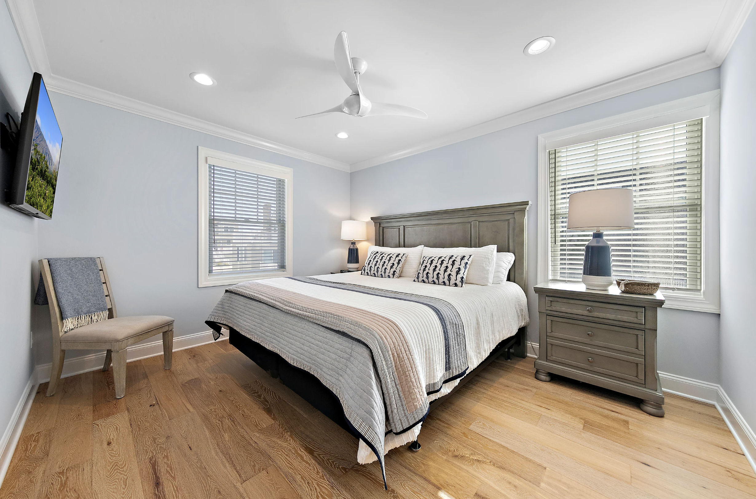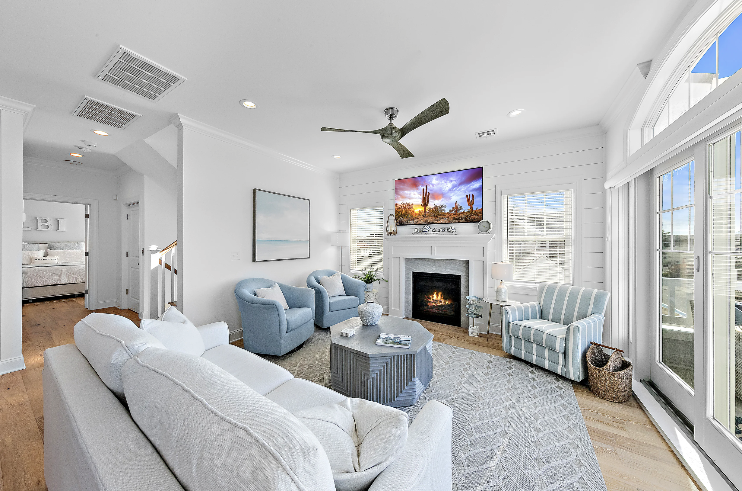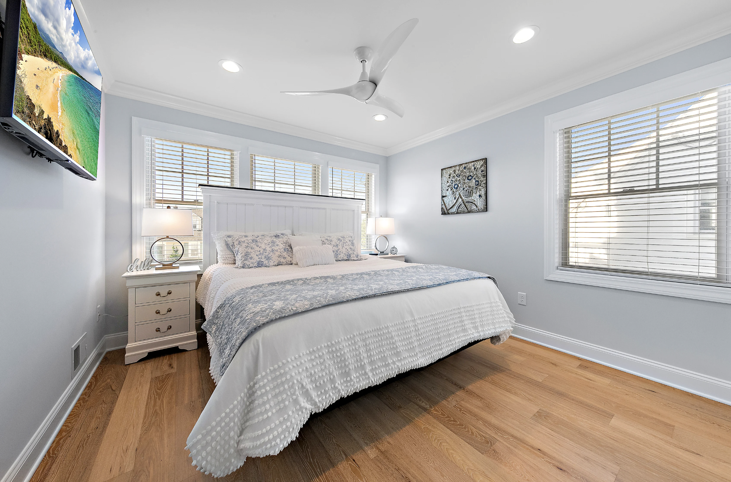 Gorgeous new reverse living in Beach Haven Park on Louisiana Avenue. Two ensuites, five bedrooms, four with king beds, and the fifth bedroom is a bunk room featuring two sets of twin-size bunks.