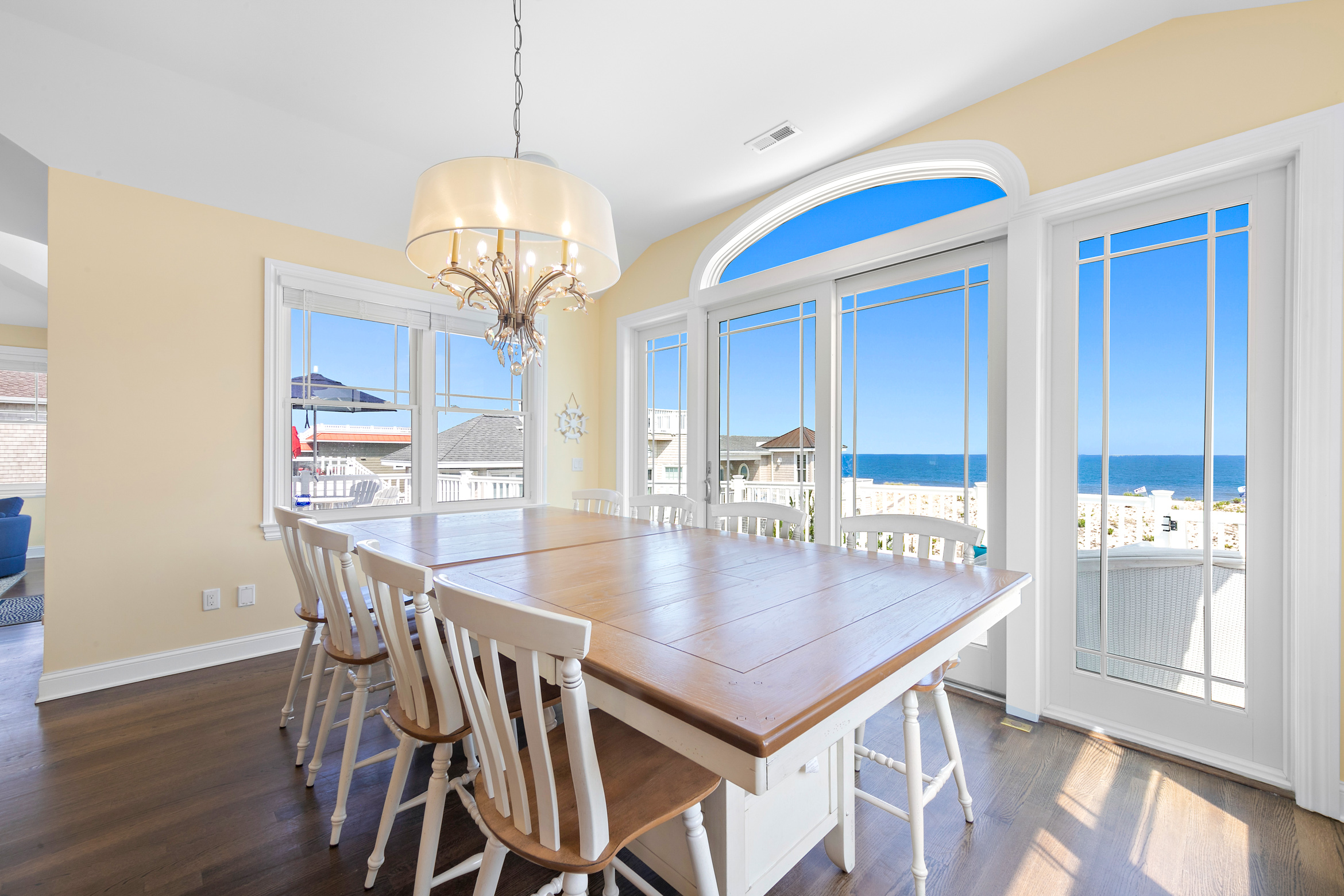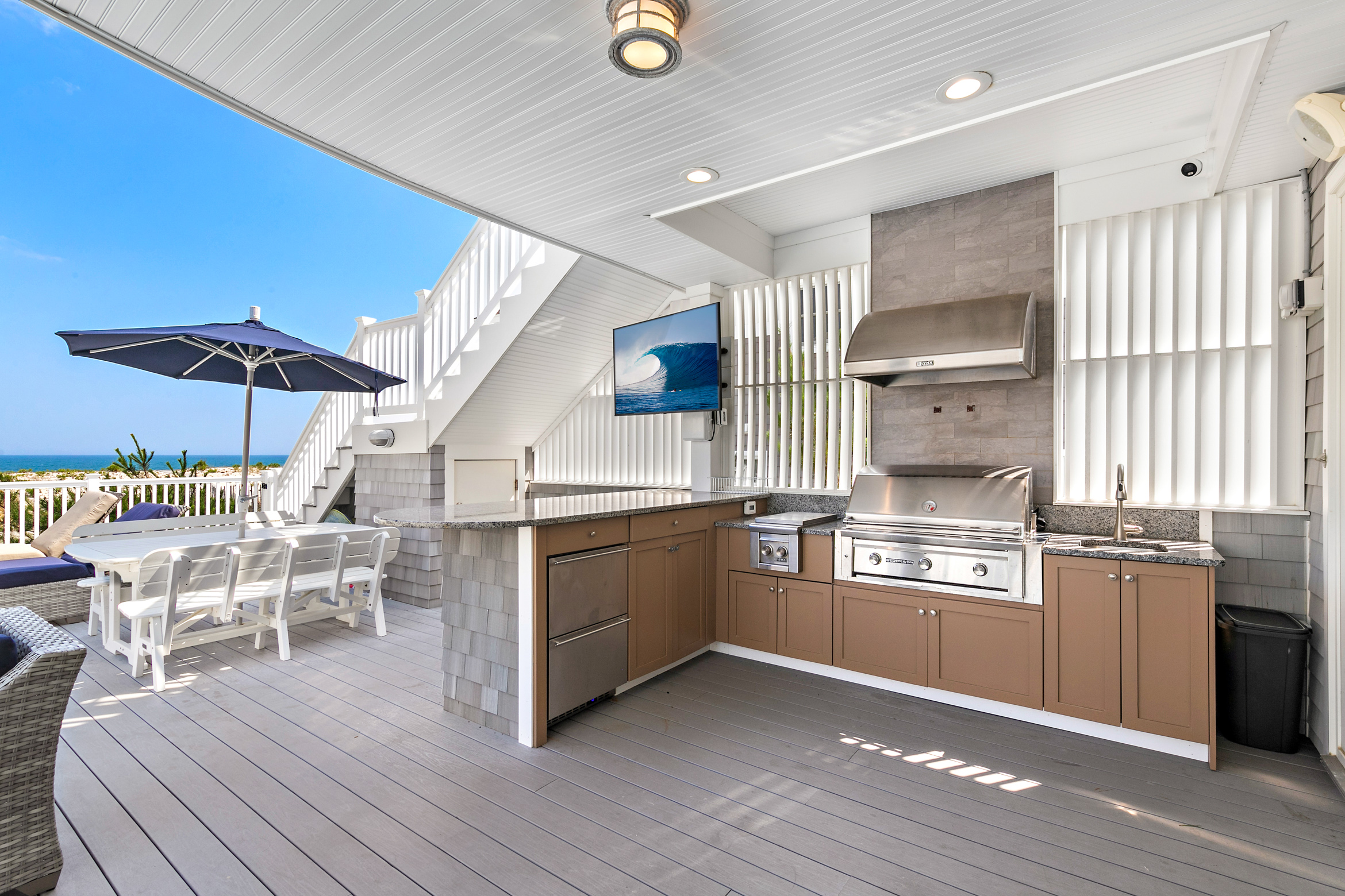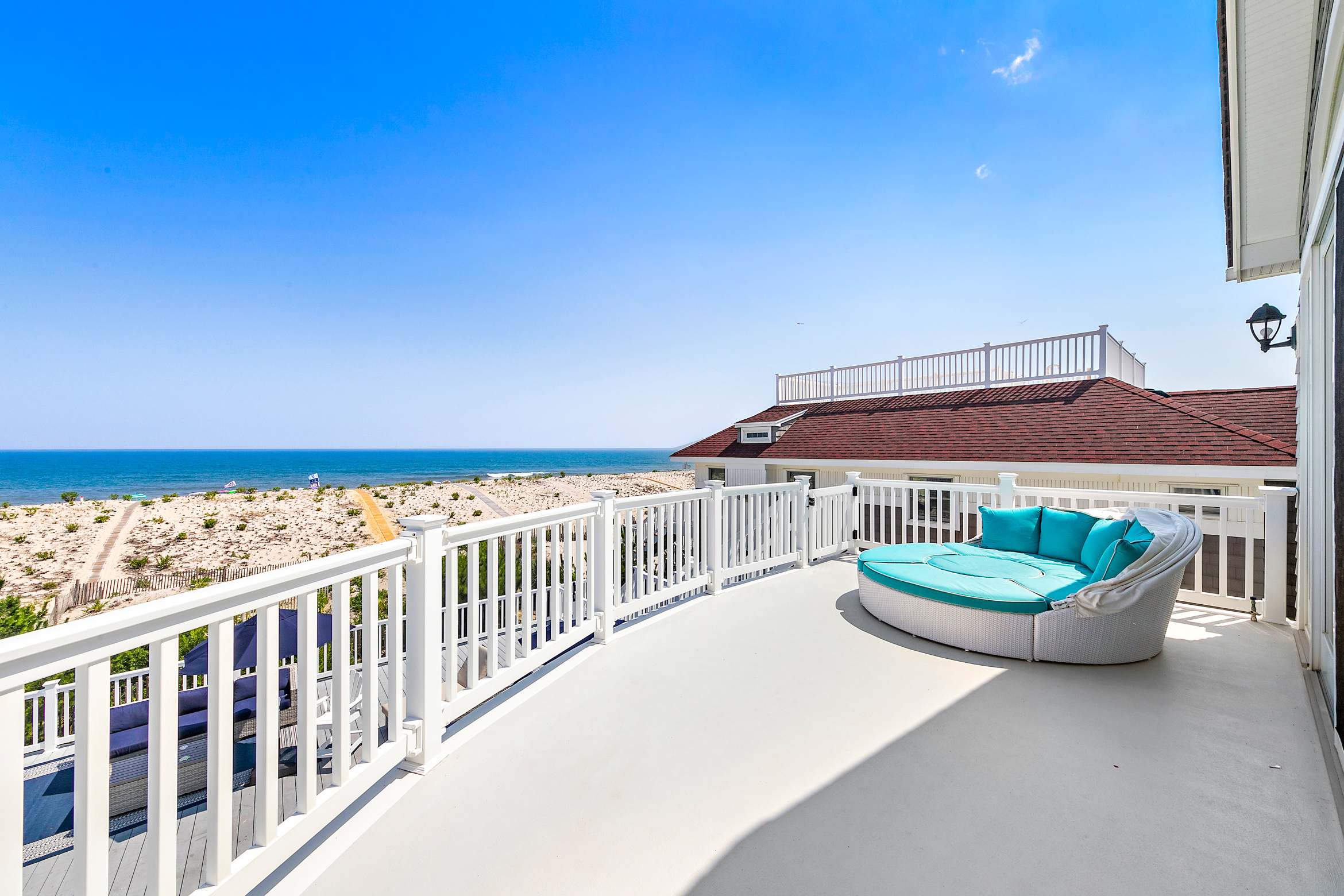 Perhaps the most alluring aspect of this nautical dream, is its focus on the ocean from the outdoor living areas on both levels. Designed for large-scale gatherings, the outdoor entertainment space centers on the saltwater in-deck pool and summer kitchen/bar, with flat screen TV and a variety of seating areas from dining to lounging. The top floor dining deck and roof-top observation deck allows you to take in all that LBI has to offer, from sunrise to sunset.