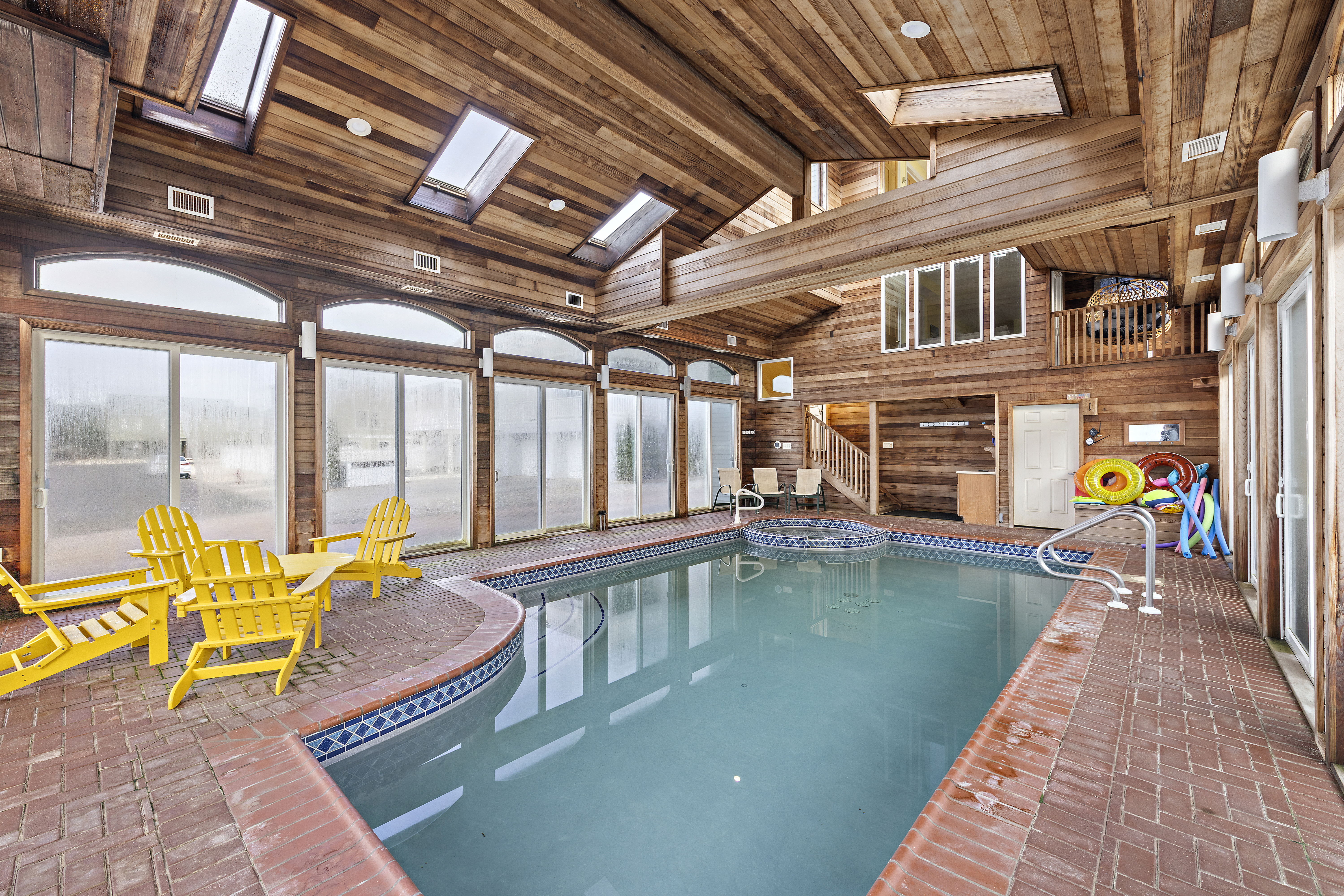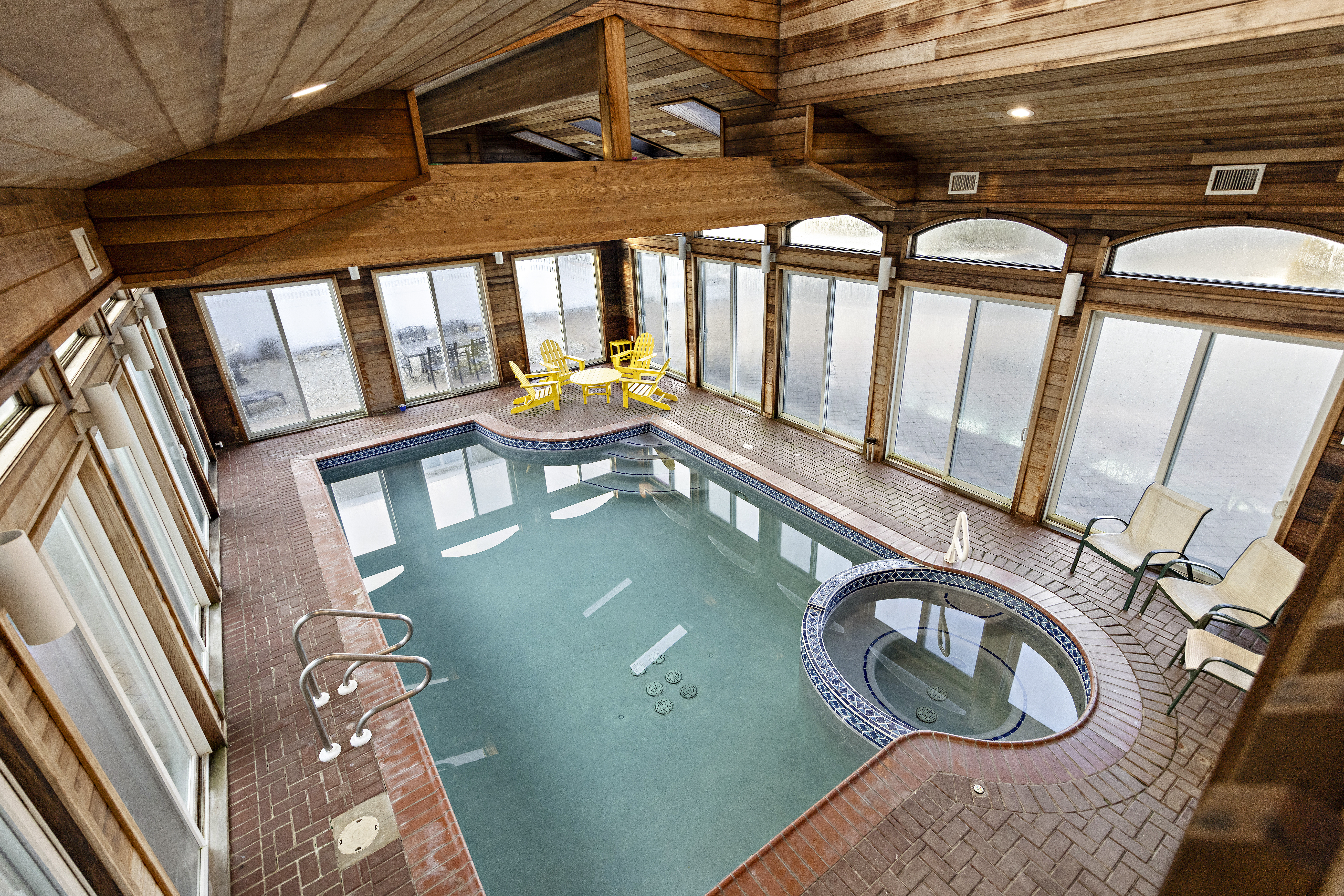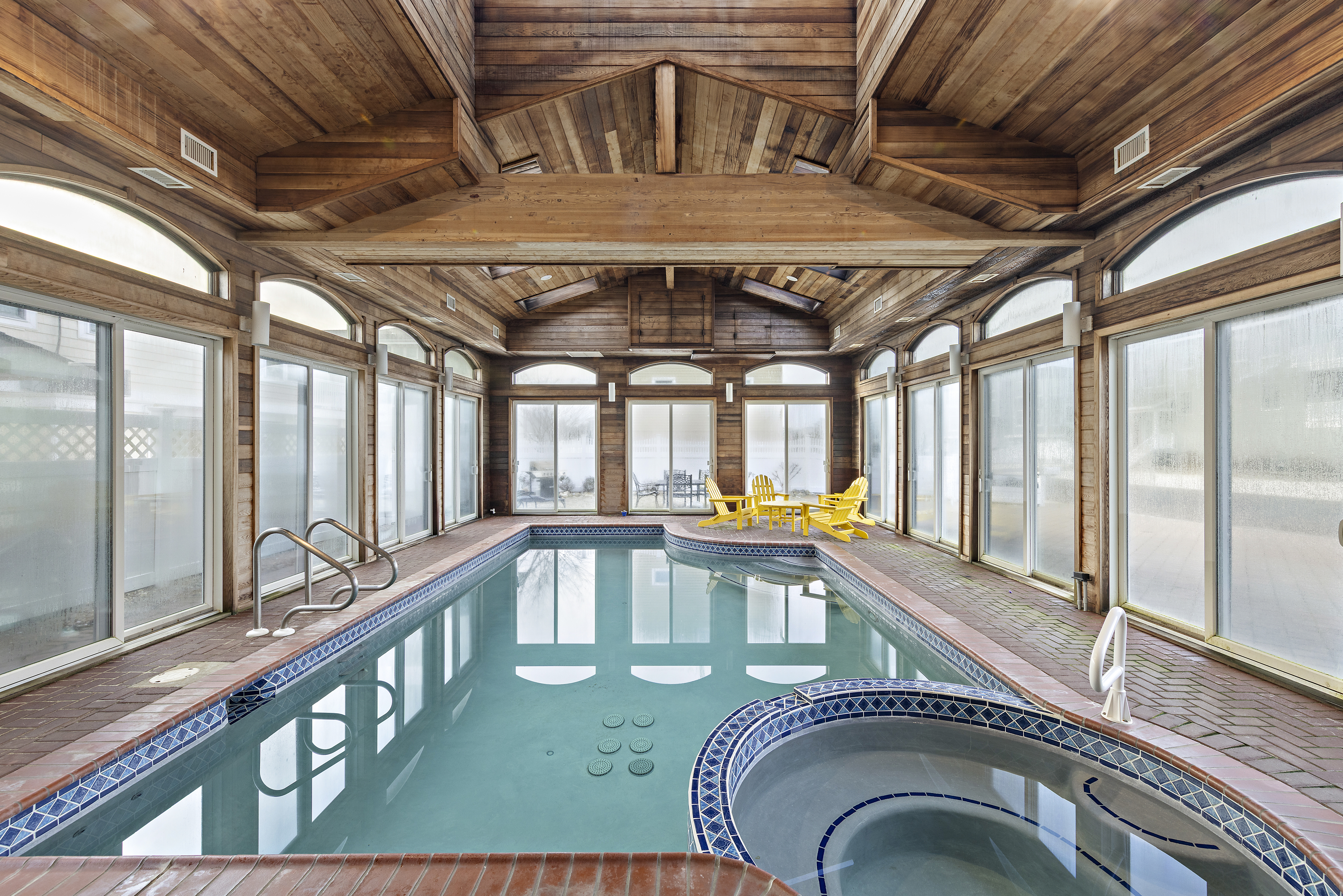 Four season fun at "Holgate Splash” with indoor swimming pool and hot tub. The perfect getaway in wonderful, quiet and family-friendly Holgate! Minutes from Beach Haven & Fantasy Island. Enjoy ocean sunrises and sunset bay views from the roof top deck! Steps away from both beach and hidden gem bay access. Modern reverse living, kitchen with a large island and dining room table for generous seating options, half bath and enclosed deck adjacent to the top floor family room with reclining, leather sectional. The top floor is completed with primary bedroom with large en suite bath. Head up to the multi-tier roof deck where you can enjoy cocktails and relax while taking in the ocean or bay views! Second floor includes second family/play room for separate kids and adult play areas. 65 inch Smart TV + Roku for movie nights. The second floor consists of 3 bedrooms. Second floor includes two full bathrooms - one Jack and Jill and a second full bath. Want a break from the beach? Take a Splash and enjoy the beautiful heated, indoor swimming pool and hot tub. You can enjoy the sun by relaxing around the pool and grill right outside for another easy dining option. The outside shower rounds out the outdoor property. 2 car garage with large paver driveway for plenty of parking. Stash your extra food/beverages in the full-sized refrigerator located in the garage. 4 adult bikes (2-beach cruisers) are there for you to ride into Beach Haven. We provide 8 beach badges, chairs, umbrellas, and boogie boards for your fun and convenience.