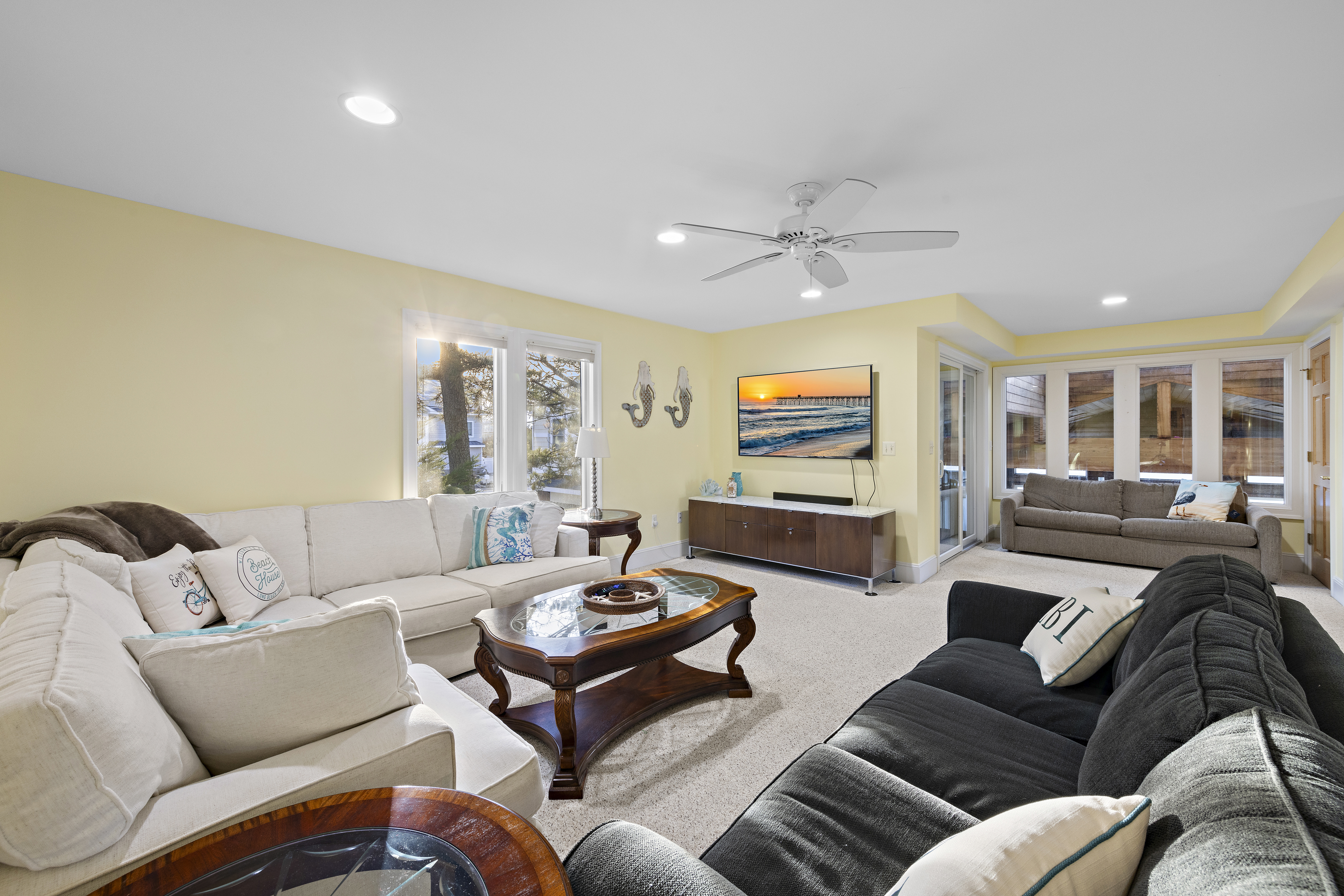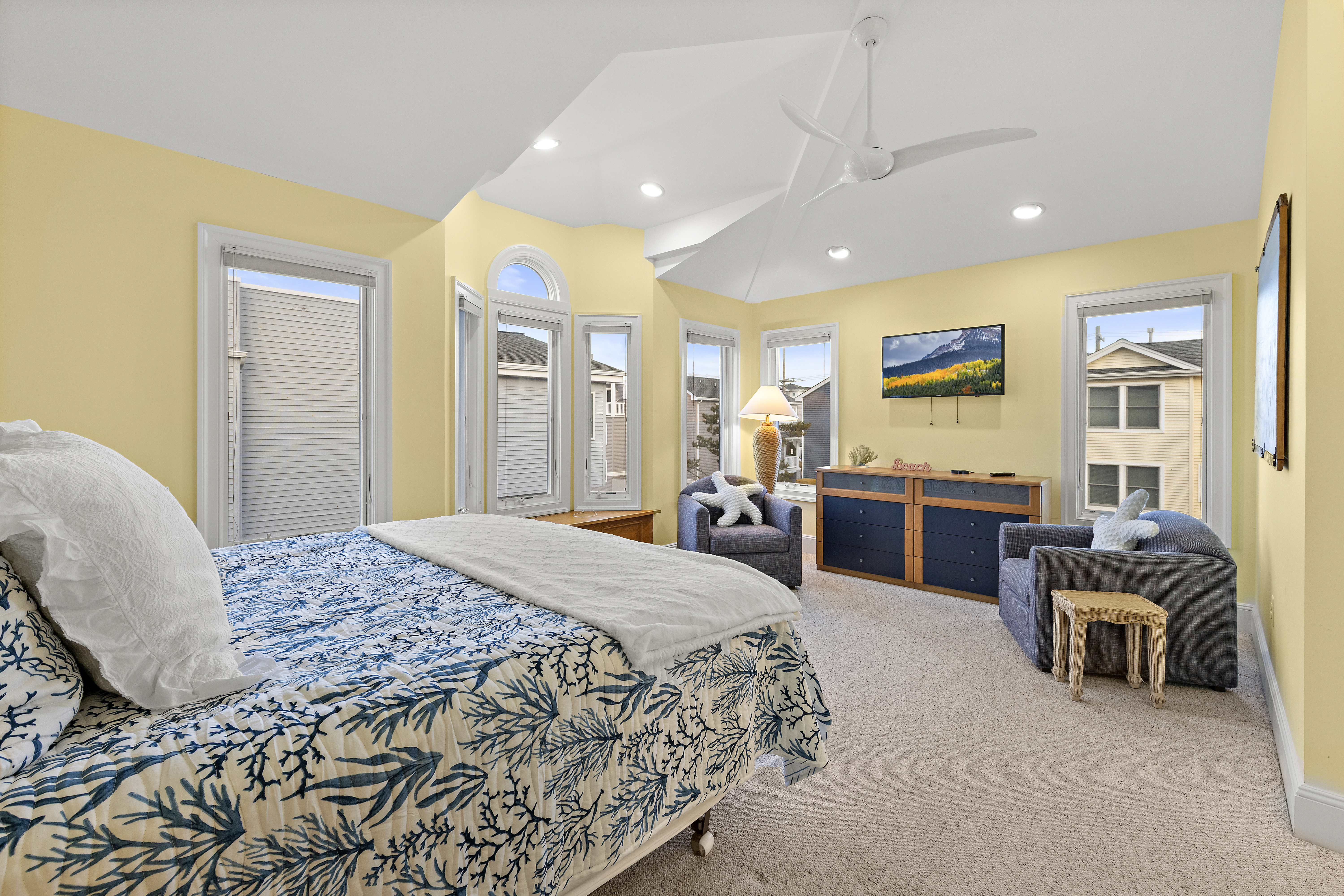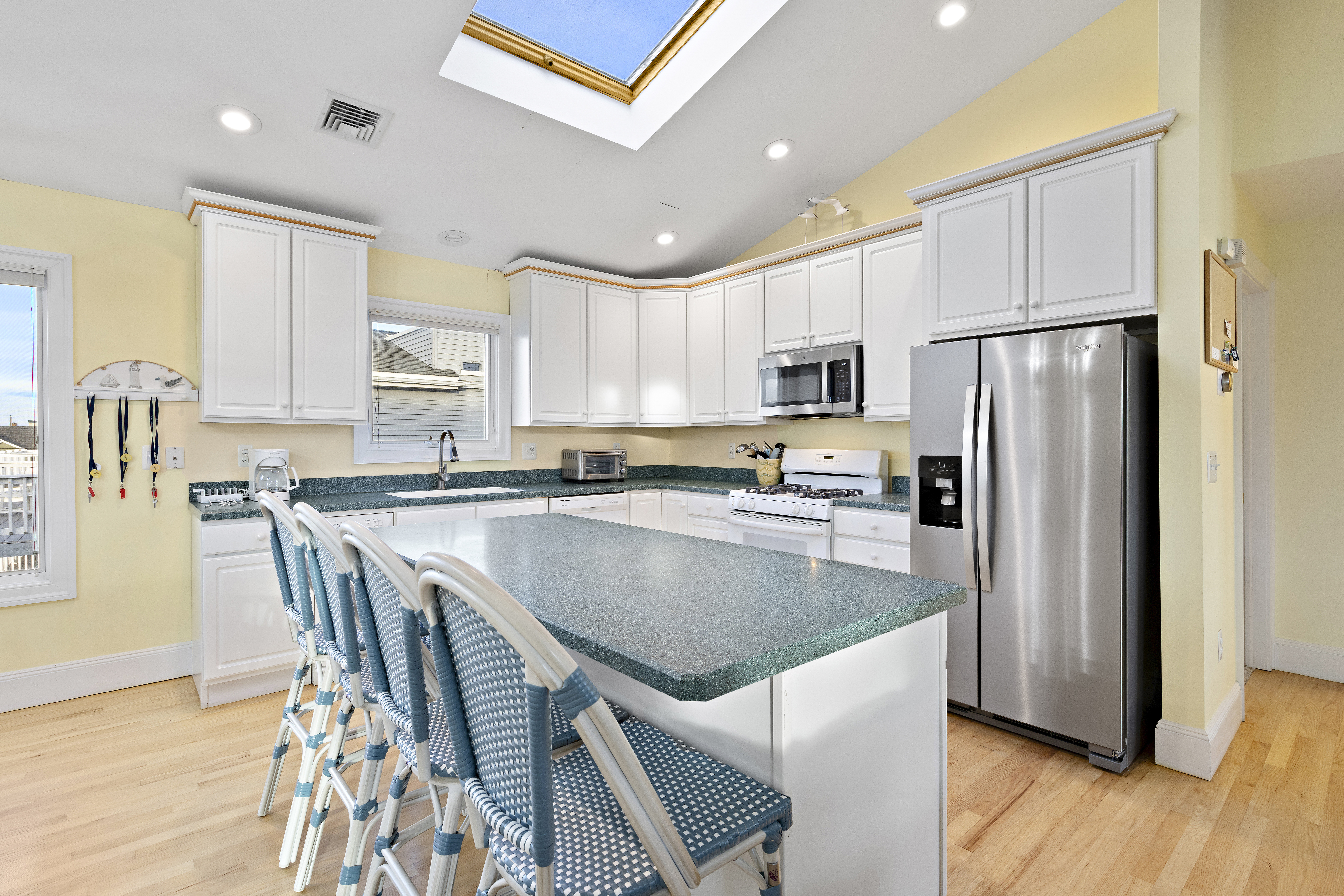 Four season fun at "Holgate Splash” with indoor swimming pool and hot tub. The perfect getaway in wonderful, quiet and family-friendly Holgate! Minutes from Beach Haven & Fantasy Island. Enjoy ocean sunrises and sunset bay views from the roof top deck! Steps away from both beach and hidden gem bay access. Modern reverse living, kitchen with a large island and dining room table for generous seating options, half bath and enclosed deck adjacent to the top floor family room with reclining, leather sectional. The top floor is completed with primary bedroom with large en suite bath. Head up to the multi-tier roof deck where you can enjoy cocktails and relax while taking in the ocean or bay views! Second floor includes second family/play room for separate kids and adult play areas. 65 inch Smart TV + Roku for movie nights. The second floor consists of 3 bedrooms. Second floor includes two full bathrooms - one Jack and Jill and a second full bath. Want a break from the beach? Take a Splash and enjoy the beautiful heated, indoor swimming pool and hot tub. You can enjoy the sun by relaxing around the pool and grill right outside for another easy dining option. The outside shower rounds out the outdoor property. 2 car garage with large paver driveway for plenty of parking. Stash your extra food/beverages in the full-sized refrigerator located in the garage. 4 adult bikes (2-beach cruisers) are there for you to ride into Beach Haven. We provide 8 beach badges, chairs, umbrellas, and boogie boards for your fun and convenience.
