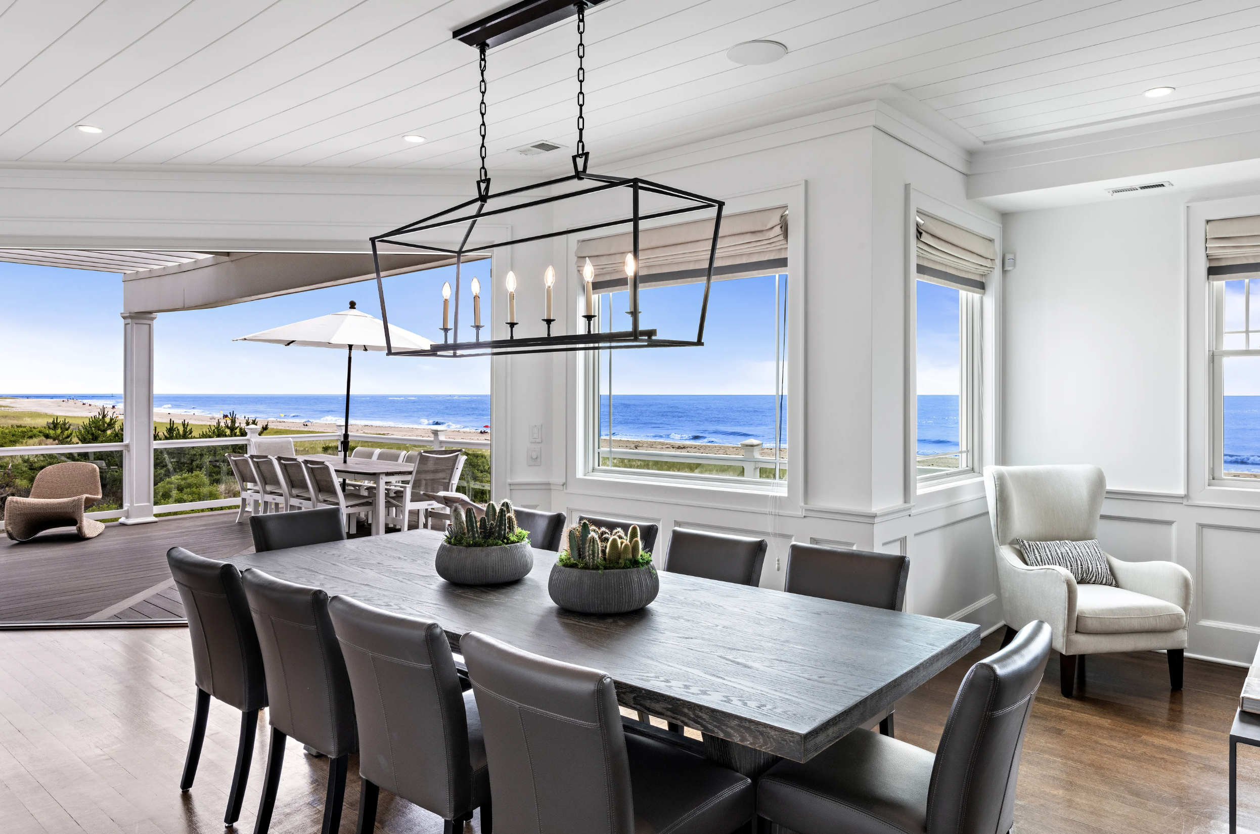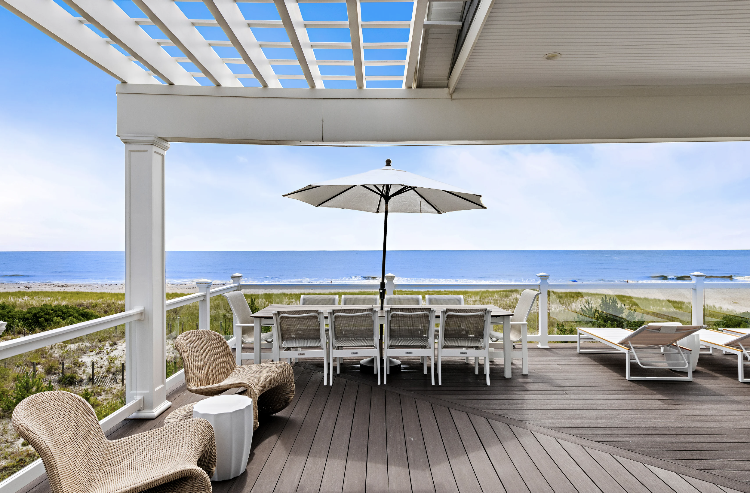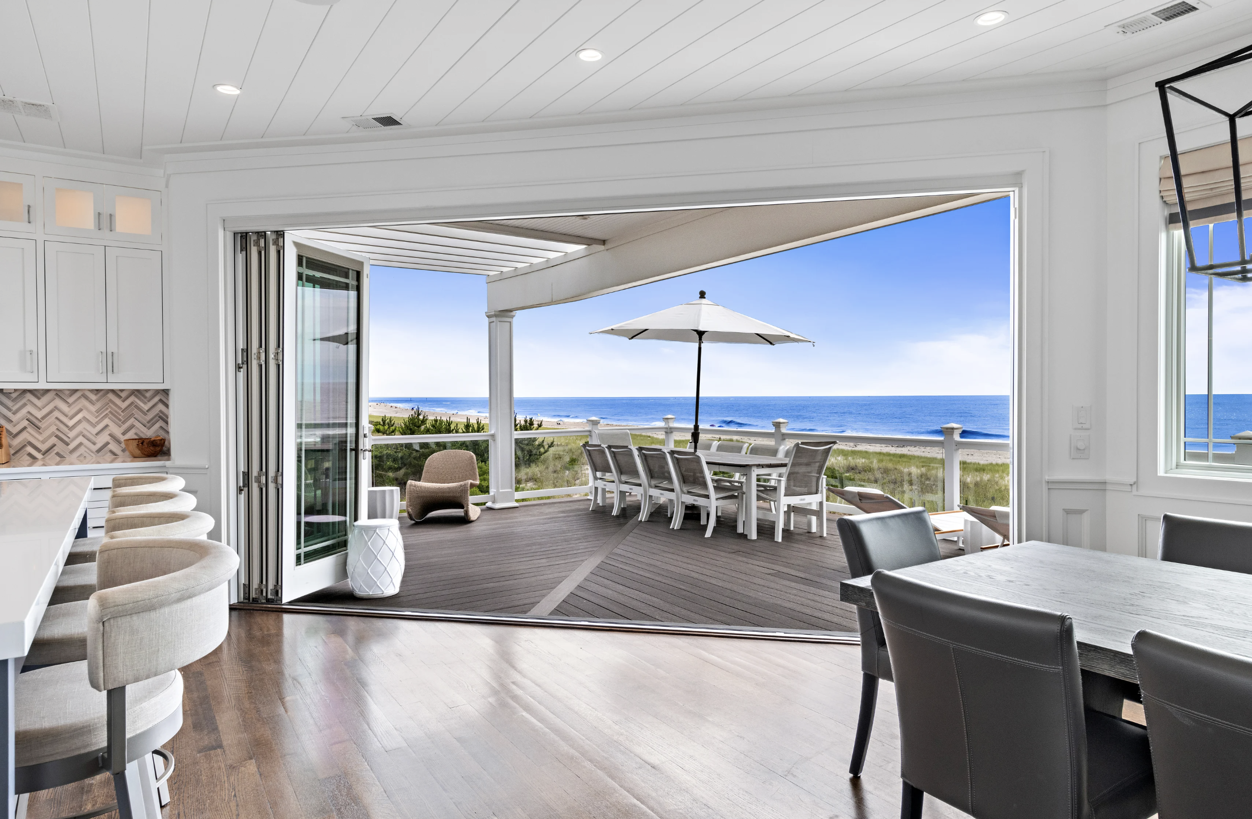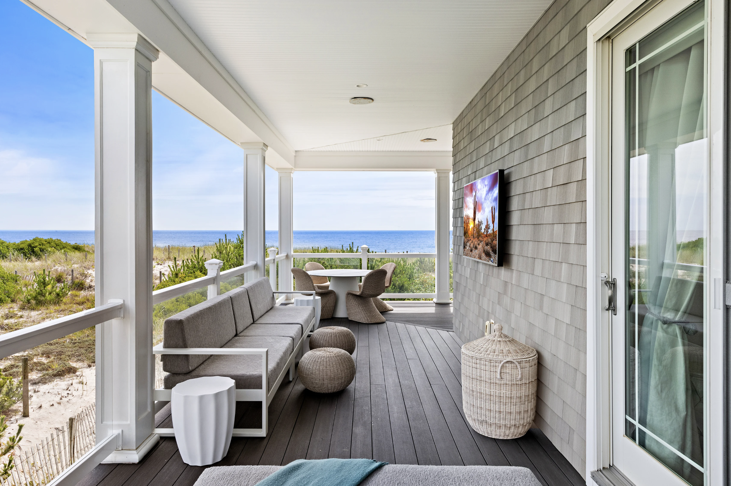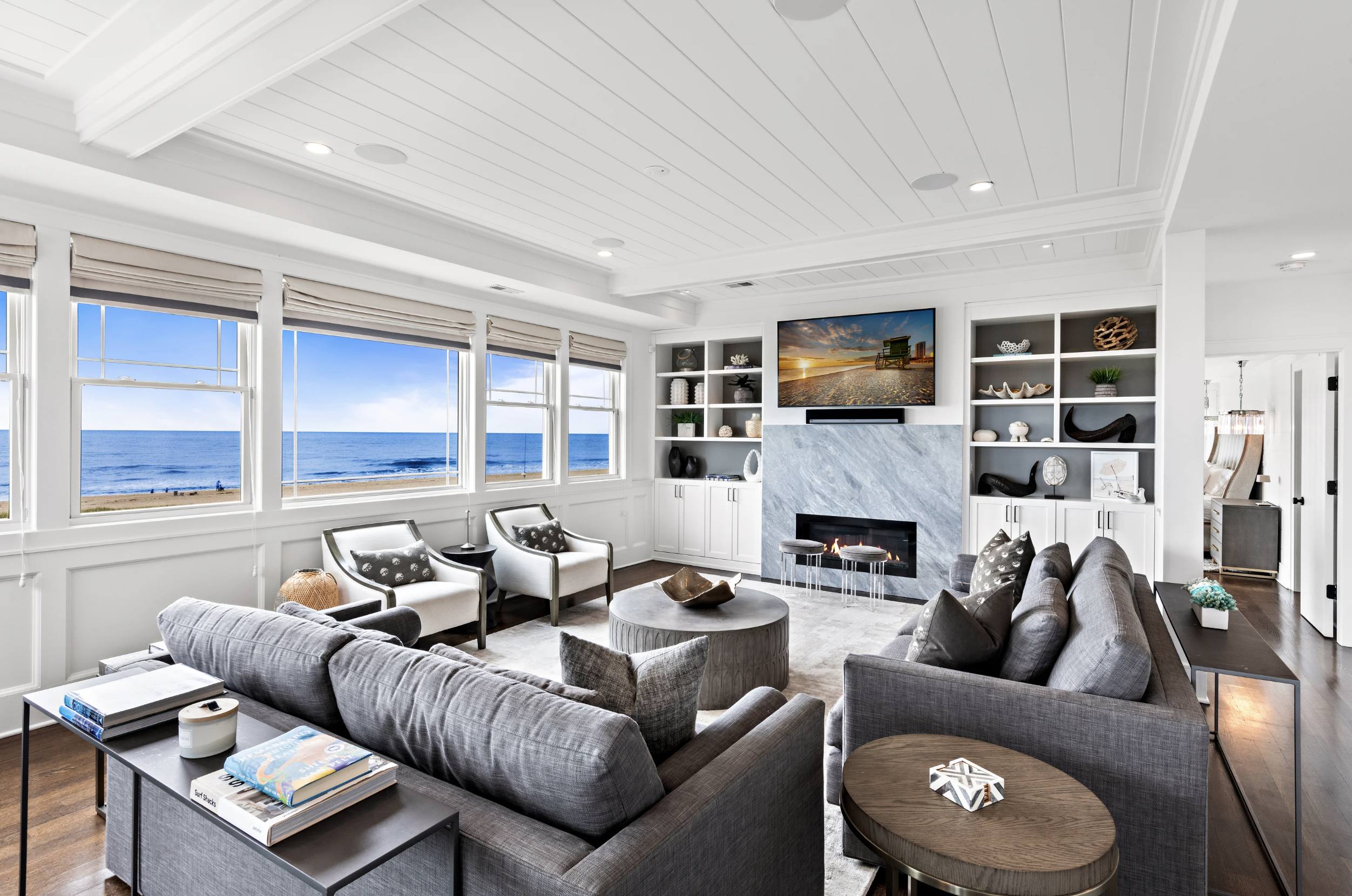 The epitome of seaside sophistication and serenity, this picture-perfect beach house is a masterpiece of coastal design, where breathtaking ocean vistas are the backdrop to every moment. Crafted to embrace the rhythm of the shoreline, nearly every room in this 4,500-square-foot, six-bedroom, nine-bath retreat offers a stunning connection to the sea.