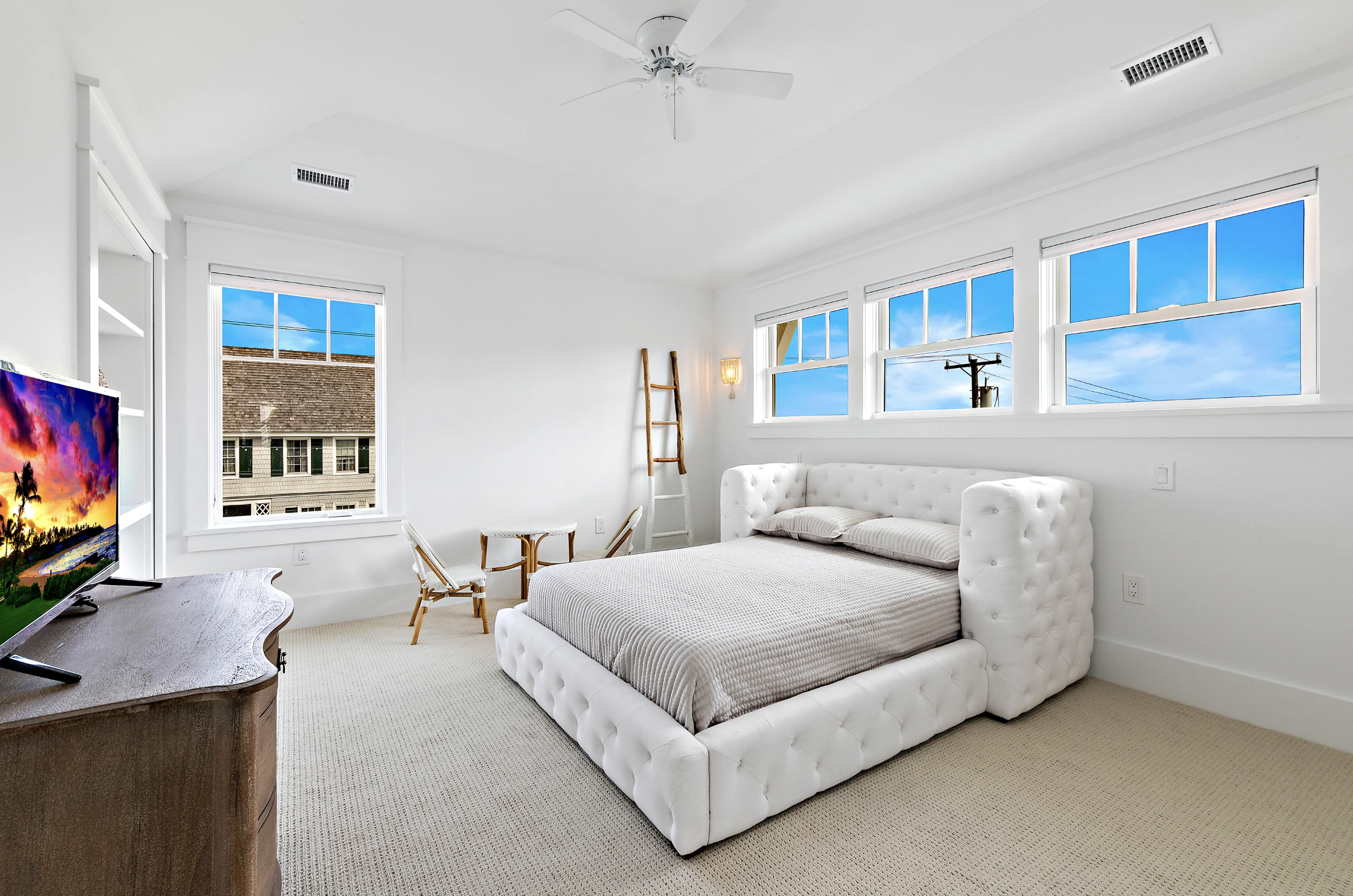 The top floor continues to 2 generously sized en suites. One reserved for your young vacationer with the best surprise sitting behind the decretive book shelf. Just push the shelf, and the wall gives way to a play room complete with doll house. Crossing to the south elevation another en suite with complimentary bath awaits.